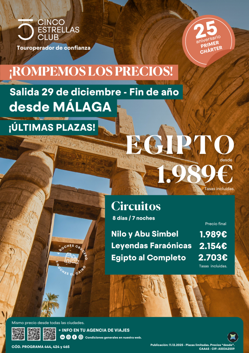 Últimas plazas y seguimos rompiendo los precios!! Salida 29 Dic dsd Málaga a Egipto dsd 1989€ Fin de Año 8d/7n