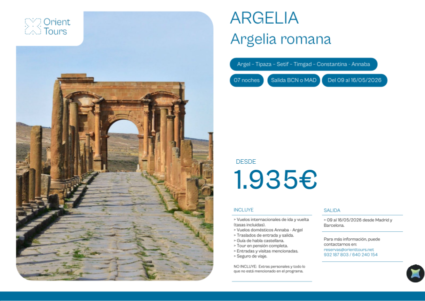 ARGELIA - Argelia romana 07 noches del 09 al 16/05/2026 vuelos bcn y mad desde 1.935€
