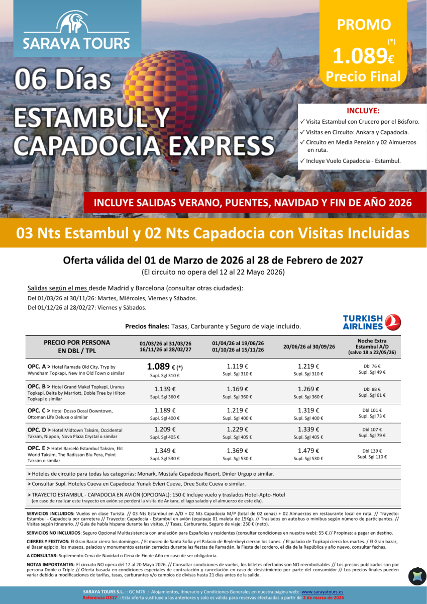 Estambul y Capadocia Express 06 días con Vuelos y Visitas Incluidas hasta Febrero 2027